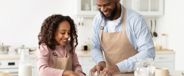 Is it a mom pulling fresh-baked cookies out of the oven right as her children come home from school?