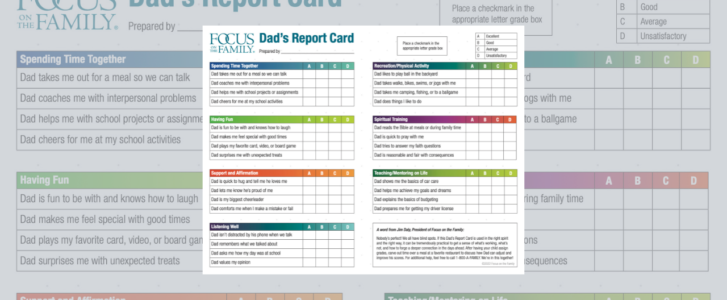 Download a copy of the Dad's Report Card and ask your children to evaluate the dad in their life. If you’re the dad, brace yourself – and commit to addressing any issues that arise.